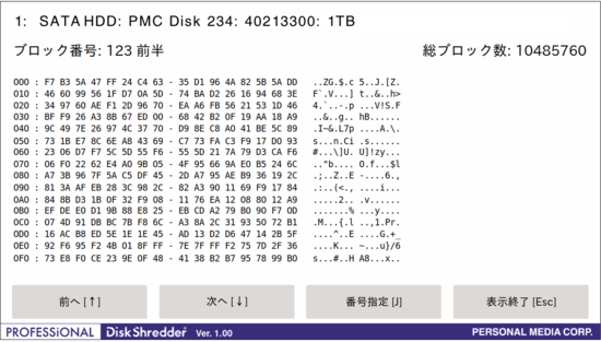 「プロフェッショナル・ディスクシュレッダー」の操作画面をご紹介します。